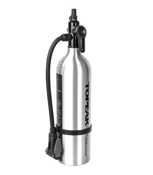 Баллон для нагнетания воздуха Tubibooster X, от производителя премиальных аксессуаров и инструментов Topeak. Данный ресивер станет незаменимым инструментом для бортировки бескамерных покрышек, так как быстро нагнетает большой объём воздуха. Баллон выполнен из алюминиевого сплава и имеет объём 1 литр с рабочим давлением 124 bar. Заправка происходит с помощью напольного насоса имеющего рабочее давление до 14 bar. Универсальная головка TubiBooster имеет удобный гибкий шланг длиной 26 см, и оснащена переключением режимов накачки и заправки. Головка совместима с ниппелями Presta и Schrader.