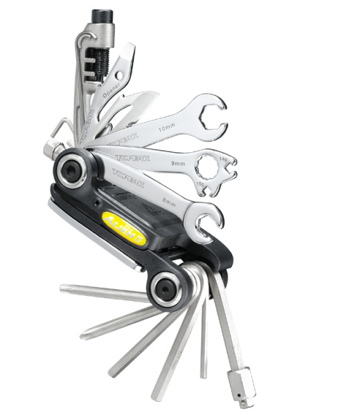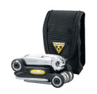 Topeak Alien II - удобный складной мультитул, который станет актуальным в любой ситуации. Мультитул содержит в комплекте 31 инструмент, включая компактную выжимку цепи для 1 -12 скоростей, которая станет отличным дополнением в длительных поездках. Также, помимо выжимки в мультитул входят шестигранники с размерами от 2L до 10 мм, компактные гаечные ключи на 8, 10 и 15 мм, спицевой ключ для спиц 14 и 15G, встроенные в корпус монтажки, шлицевая и крестовая отвертки, измеритель износа цепи, нож, открывашка, педальный ключ, Torx ключ T25, и стандартный торцевой ключ на 9 мм. Вместе с мультитулом в комплекте идет чехол благодаря которому хранение инструмента станет более удобным.