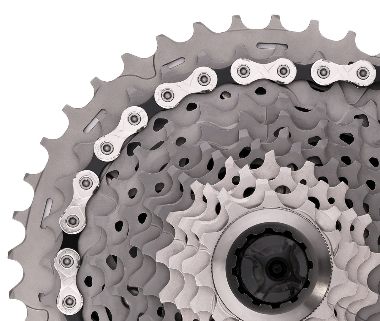 KMC X11 - производительная и недорогая цепь для DH, MTB, циклокроссового и городского направления велосипедов. Считается одной из высоких моделей в линейке производителя. Цепь универсальная, совместима с актуальными трансмиссиями SHIMANO, SRAM, Compagnolo и прочих производителей. Выполнена с применением технологий Highest Pin Power, Double X Durability, Double X Bridge Shape, Outer Plate Chamfering и Inner Plate Chamfering. Они препятствуют растяжению и разрыву цепи, а специальная конструкция звеньев способствует четкому и плавному перескакиванию по звездам трансмиссии. Имеет 118 звеньев с размером 1/2"x 11/128", подойдет для 11-ти скоростных кассет. Совместима с замками цепей KMC CL555R, CL555. Рассчитана для трансмиссий с диапазоном 1х11, 2х11.